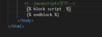 base.html로가서 자바스크립트 코드를 별도의 영역에 만들어서 스크립트를 쓸 수 있게 만들어준다.