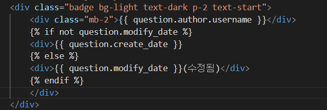 조건문을 사용해서 question.modify_date로 수정된시간을 나타내준다.