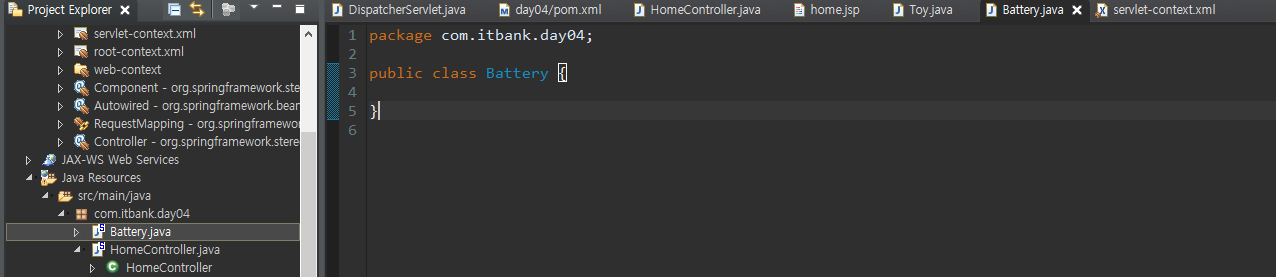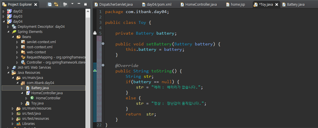 클래스 토이에 private 배터리 필드를 autowired 해주고