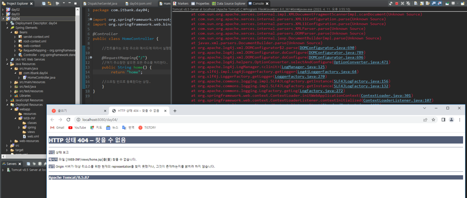 views에 home.jsp가 없기때문에 404에러코드가 뜬다.