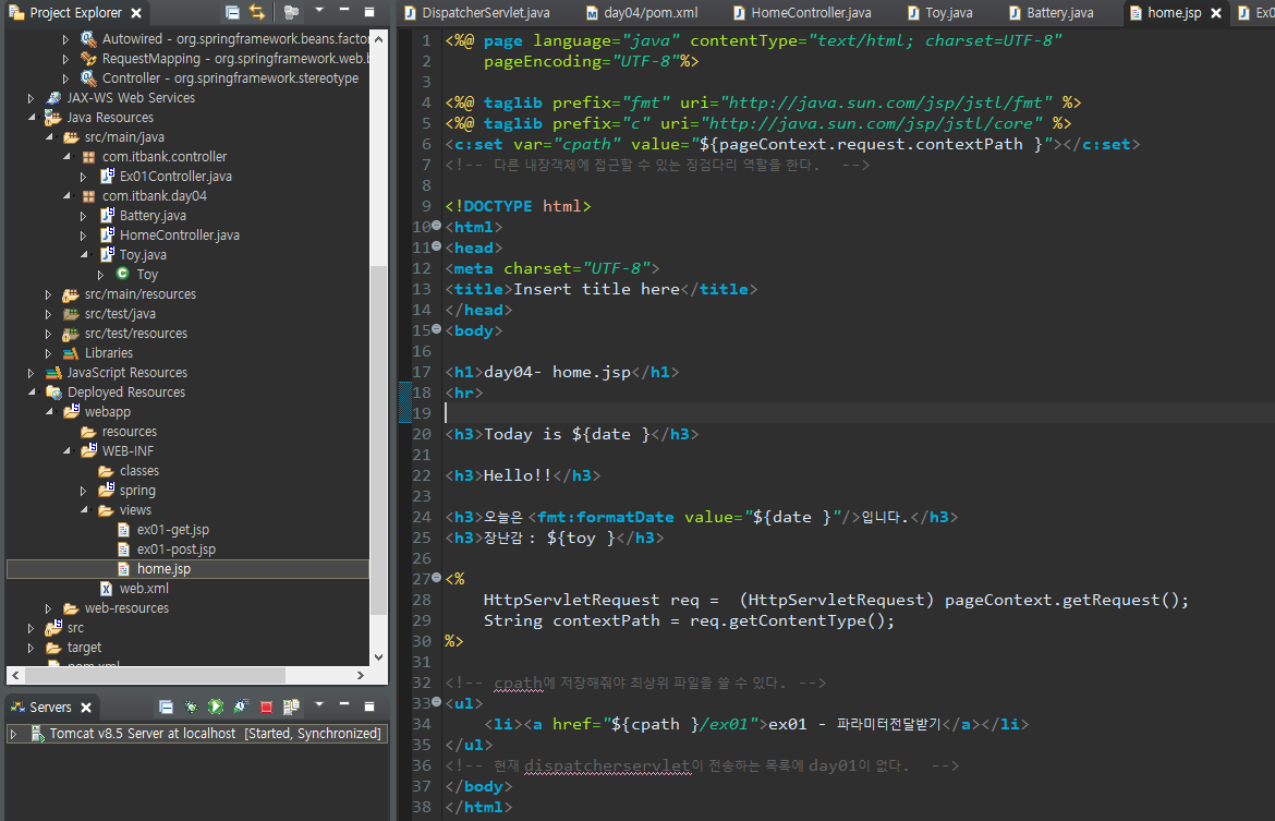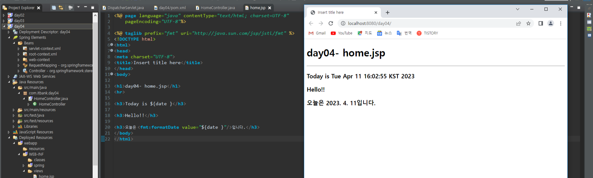 EL 태그로 Homecontroller에서 today값을 전달받아 . 오늘 날짜를 간단하게 입력
